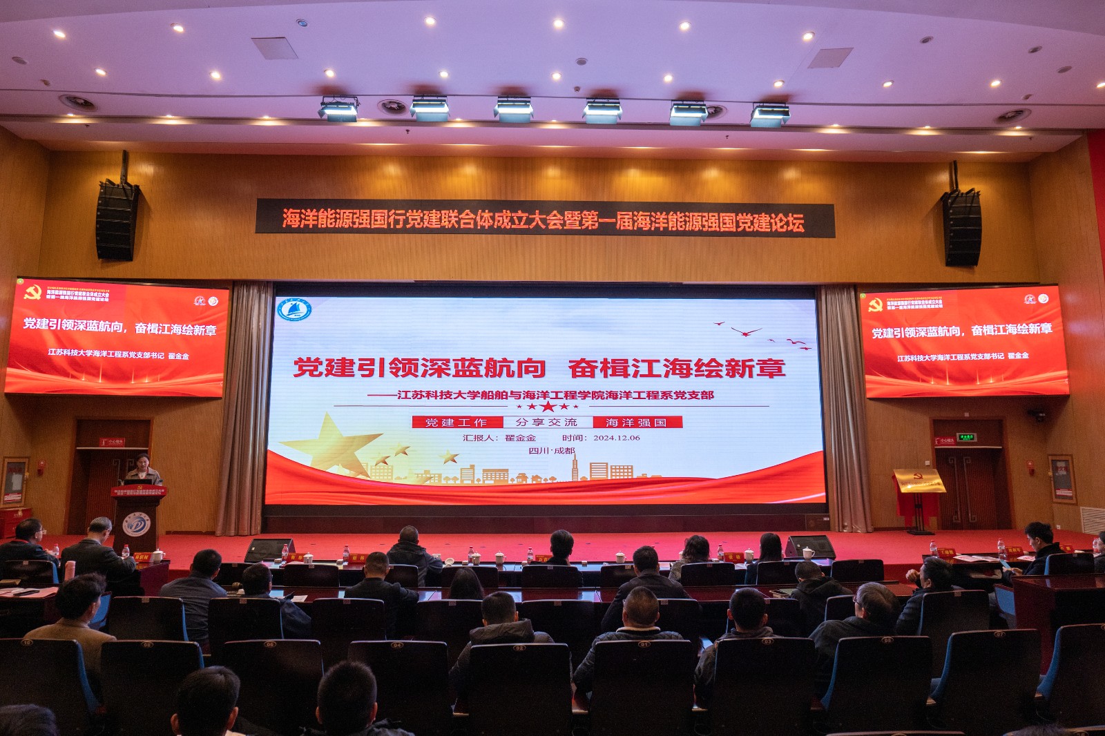 牢记嘱托勇担海洋能源强国使命,党建联建凝聚逐梦深蓝智慧力量。12月6日,由中国海洋石油集团有限公司、中共四川省委组织部、中共四川省委教育工委、四川省教育厅联合指导的“海洋能源强国行党建联合体成立大会暨第一届海洋能源强国党建论坛”在西南石油大学举行。中国海洋石油集团有限公司党建工作部综合处副处长万青霖,中共四川省委教育工委、四川省教育厅党建与干部人才处处长王挚,西南石油大学党委书记张烈辉出席会议并讲话。来自全国与相关省市15所高校“强国行”专项行动团队负责人、高校“双带头人”教师党支部书记工作室负责人、党建工作样板支部书记、支部委员代表等100余人参加了此次活动。3044am永利集团3044noc被推选为第一届副理事长单位,船舶与海洋工程学院海洋工程系党支部受邀参加成立大会并作报告。