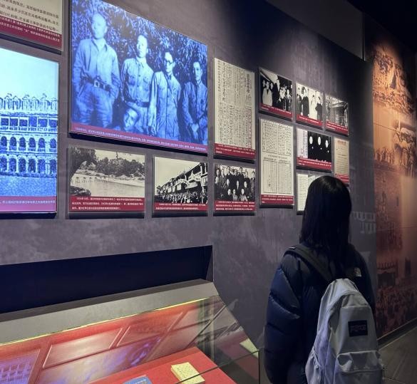 1月20日实践团成员来到无锡博物馆革命历史馆展馆二进行参观学习。在博物院的四层无锡革命陈列馆,我们跟随讲解员的步伐,认真参观了《血与火的城市记忆——无锡革命史》展厅。展厅内,从1919年“五四”运动起至1949年中华人民共和国成立的革命斗争历程被生动再现。参观过程中,讲解员详细介绍了党的创建和大革命时期、土地革命时期、抗日战争时期、全国解放战争时期四个阶段的发展历程。无锡人民在中国共产党的领导下,经历了艰苦卓绝的革命斗争,哺育了一批批优秀的共产党员和英雄儿女。荣毅仁、秦邦宪等先锋人物的光辉事迹,让我们深受感动,更加坚定了听党话、跟党走的信念。