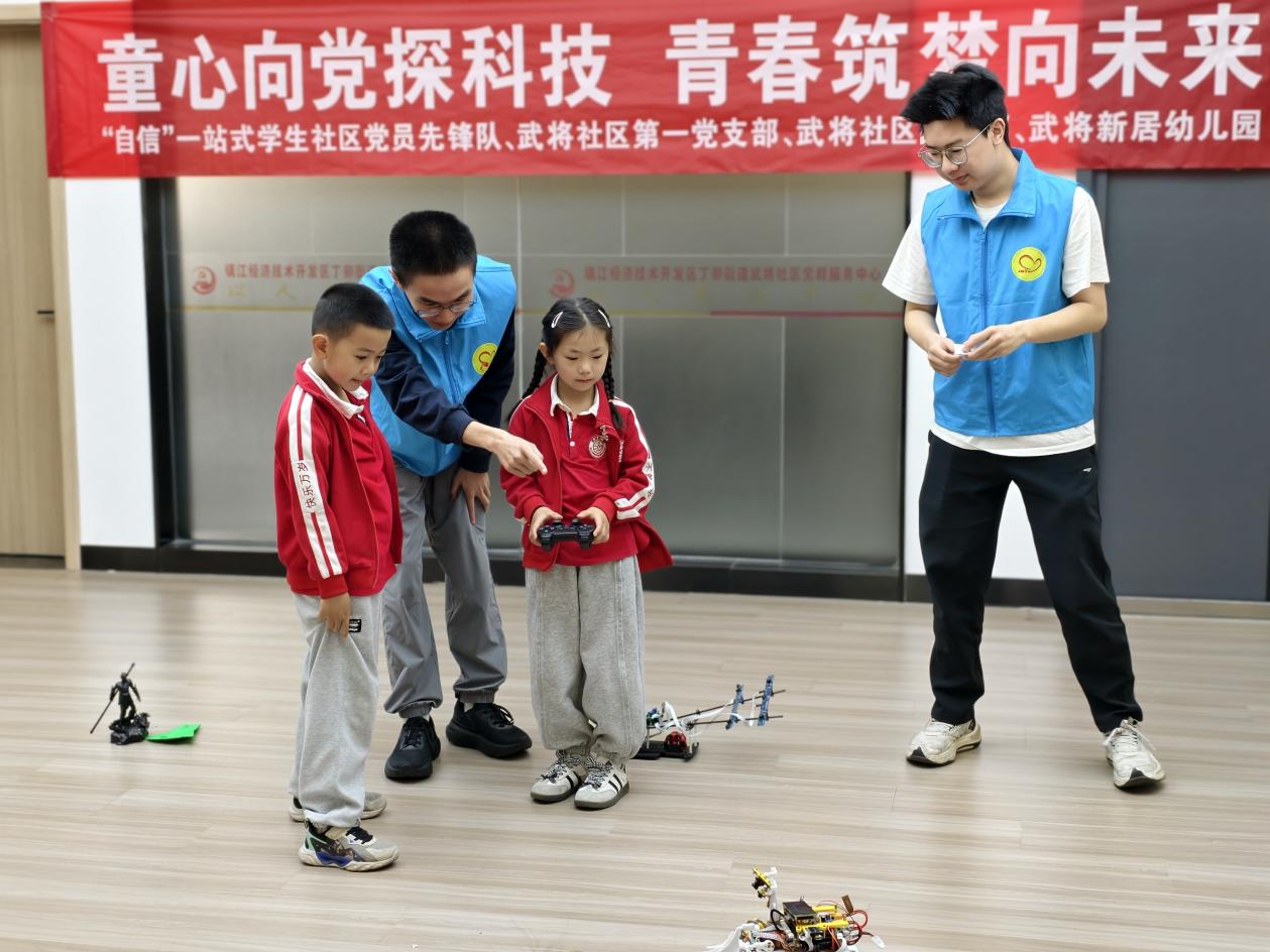 4月29日,自动化学院"自信"一站式学生社区党员先锋队联合中共镇江经开区丁卯街道武将社区第党支部,以"童心向党探科技,青春筑梦塑未来"为主题,共同开展五四青年节党建共建活动。本次活动通过支部结对、理论共学、科技启蒙"三步走"模式,构建起校社协同育人新平台,为基层党建注入青春动能。