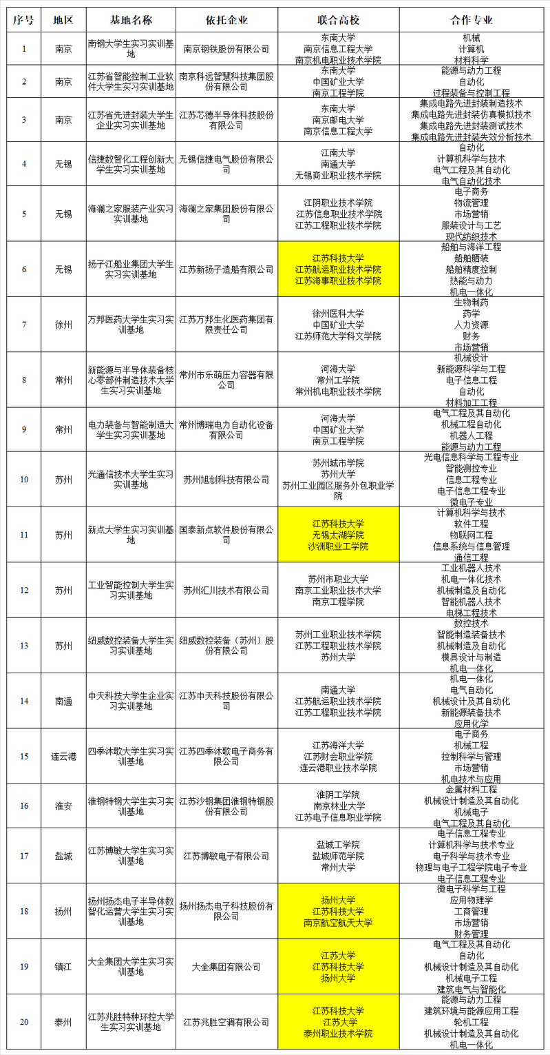 5月15日,江苏省工信厅公示了首批江苏省大学生企业实习实训基地支持名单,全省共计20家企业入围。其中,永利官网有5家依托企业获批省级大学生企业实习实训基地,获批数量位居全省高校第一。